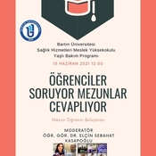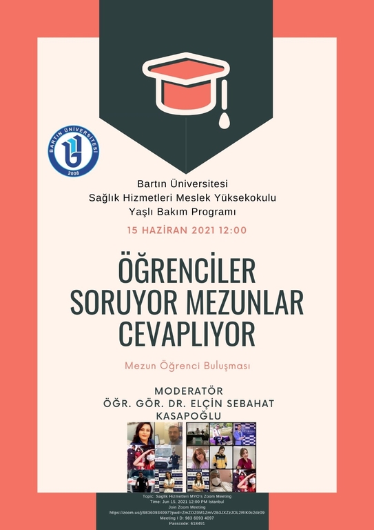 Yaşlı bakımı programından mezun olan öğrencilerimizin konuk olacağı etkinliğe tüm öğrencilerimizin katılımını bekliyoruz. Etkinlik ile ilgili bilgileri görselde bulabilirsiniz.