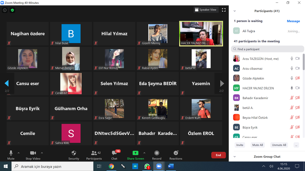 Covid19 pandemi süreci sebebiyle değişen yaz stajı uygulaması hakkında öğrencilere bilgi verildi. 2020 yaz döneminde yaz stajı yapacak öğrencilerle, bu süreçte izleyecekleri yol ve staj yeri,süresi ve evrakların temini konusunda zoom üzerinden online toplantı yapıldı. 04.06.2020 saat 15:00 da gerçekleştirilen toplantıya SHMYO müdürü Dr. Öğr.Üyesi Hacer YALNIZ DİLCEN ile Staj komisyonu başkanı ve program koordinatörü Öğr. Gör. Arzu TAZEGÜN ve staj yapacak öğrenciler katıldı. Toplantı sonucunda öğrencilerin soruları cevaplandırılmış olup bu süreçte karşılabilecekleri sorunların çözümüne yönelik bilgilendirme yapılmıştır.